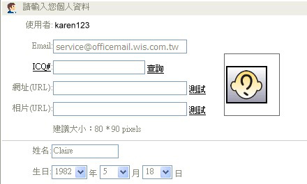 依照自己需求分別修改個人資料,修改完畢後請選擇〔確定〕,即完成修改個人資料的動作。