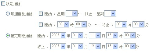 4. 若您所設定過濾規則只需運用於某段時間,您可〔啟用〕限期過濾功能,指定欲執行過濾規則的時段,設定完成後請選取〔確定〕按鈕即可。