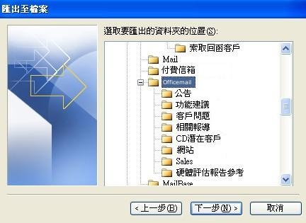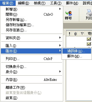 選擇功能列「檔案」下拉式選單,點選「匯出/匯入」,選擇「匯出至檔案」,按〔下一步〕。