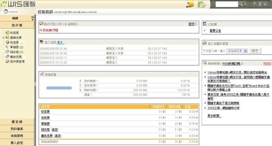 1. Webmail 的使用者介面,融合了 Web 版及 Outlook 式的收發信介面,目的即為提供用戶更人性化的使用介面,