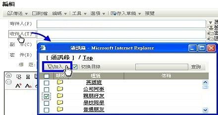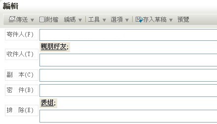 這裡所謂的排除功能,指的是在群組或目錄寄信時,您可以選擇排除群組或目錄當中的某些成員。 1. 選擇您要寄信的目錄或群組為收件人。