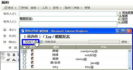 3. 進入該目錄/群組後,請勾選您不希望收信此信的對象→再按下「加入」即可。
