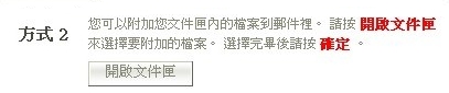 | 3. 您可以附加網路硬碟-我的檔案,將其中的檔案附加至郵件裡。 請按「開啟文件匣」選擇所需附加的檔案,再按「確定」。 |