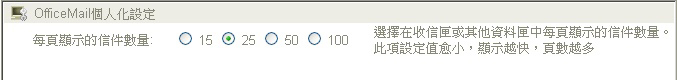 」 的設定頁面中,勾選每頁欲出現的信件數量。